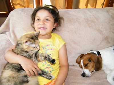 Little Chick and I adopted a rescue dog from Arkansas. She is a beautiful little Beagle who has been through many sad experiences in her past. Because she came from an unkind place I told Little Chick that we had to be extra soft, warm and gentle with her. We took her home on Tuesday night and she was very ill. I spent the entire first night up with her outside while she tried desperately to go to the bathroom. We went to the Vet yesterday and she has a huge ear infection and colitis due to all the stress she had been through. I have kept her by my side and have caressed her a lot assuring her that we are warm and kind and that she is safe. She received a shot and has been on medication since last night and was able to sleep. She is still not well, but at least is surrounded by love - the first medicine and most important one to getting better! We named her Lolli. You know Little Chick loves delicious lollipops. Have a great Thanksgiving Thursday!